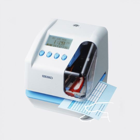Marcatempo Seiko TP-50 con 2 righe di stampa e 4 timbrature selezionabili da comodi pulsanti. Completamente programmabile. Timbratura in nero (disponibile anche il nastro rosso). Timbra orari, date, testi, numeri progressivi, ecc.